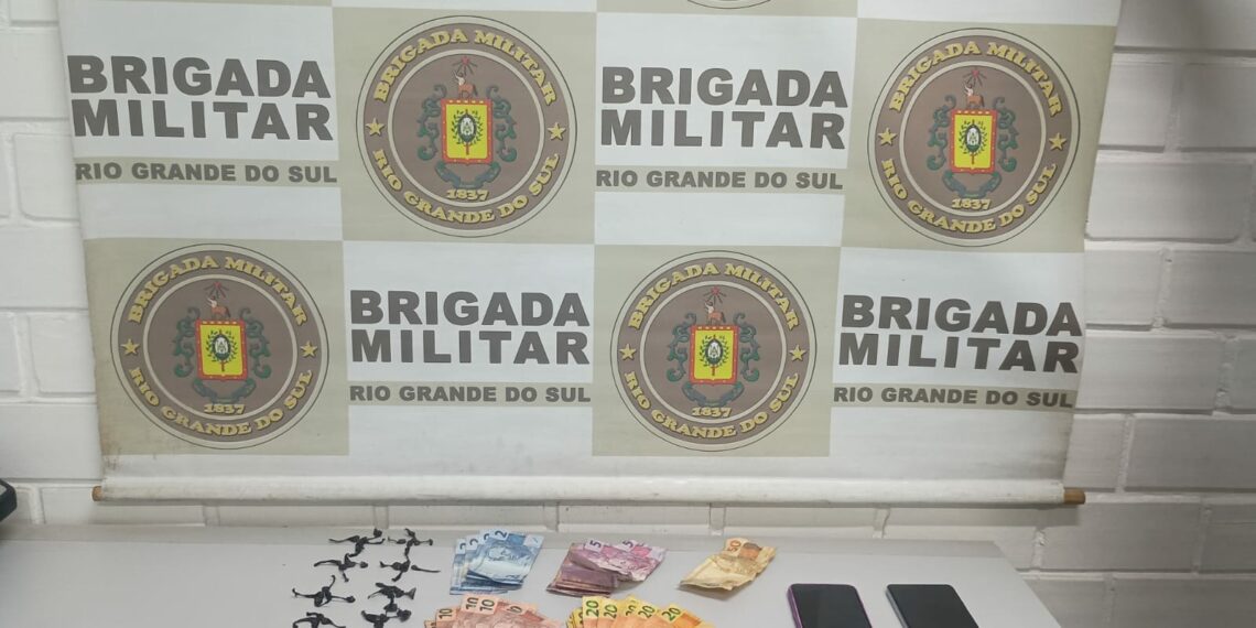 Durante patrulhamento realizado na tarde desta terça-feira, no bairro Rio Branco, uma guarnição da Brigada Militar visualizou duas pessoas, um homem e uma mulher, que aparentavam trocar um objeto. Ao perceberem a aproximação da viatura, um deles levou a mão próxima à cintura, atitude que levantou suspeita dos policiais.