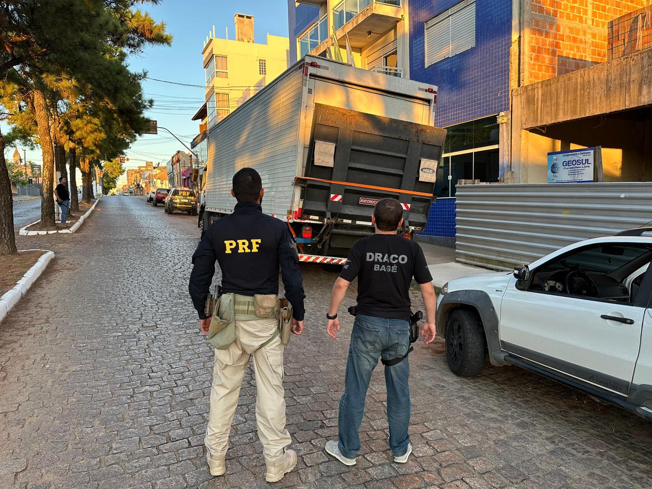 Durante ação de combate aos crimes transfronteiriços, policiais abordaram uma Strada, emplacada em São Marcos/RS, e um caminhão VW 24.250 CNC, emplacado em Criciúma/SC. O motorista da caminhonete era um homem de 20 anos, de Gravataí. O motorista do caminhão era um homem de 33 anos, de Campo Bom.
