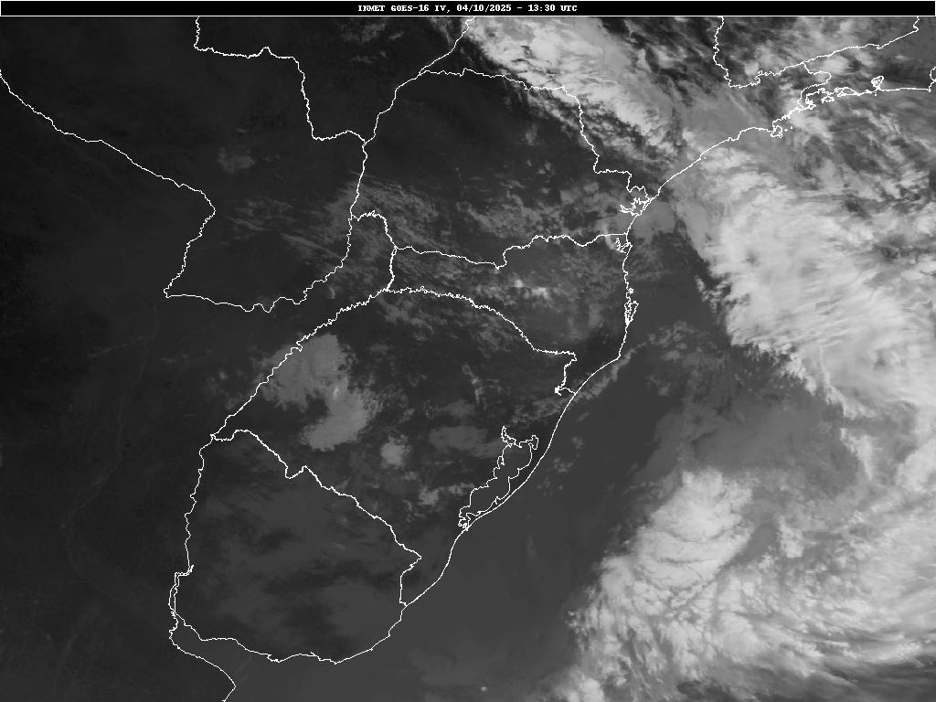 Ao longo da segunda-feira o sistema segue avançando pelo Rio Grande do Sul, causando chuva pontualmente intensa, raios, eventual queda de granizo e rajadas de vento que podem ultrapassar os 80 km/h associadas às instabilidades.