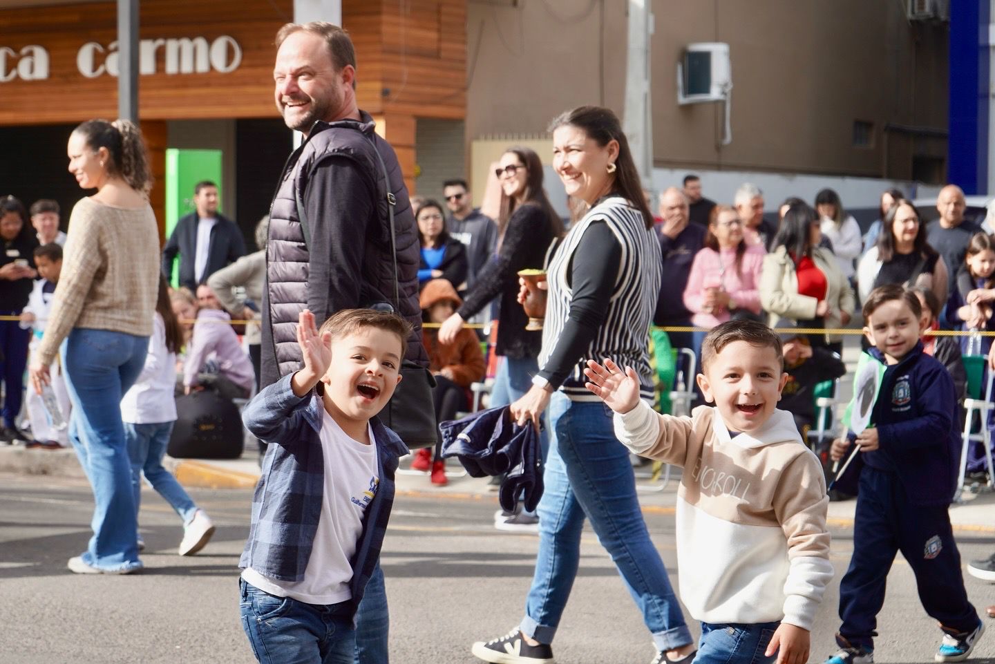 O desfile também foi marcado pela alegria contagiante das crianças, que desfilaram com orgulho, e pelo envolvimento das famílias campo-bonenses, que prestigiaram cada momento da programação.