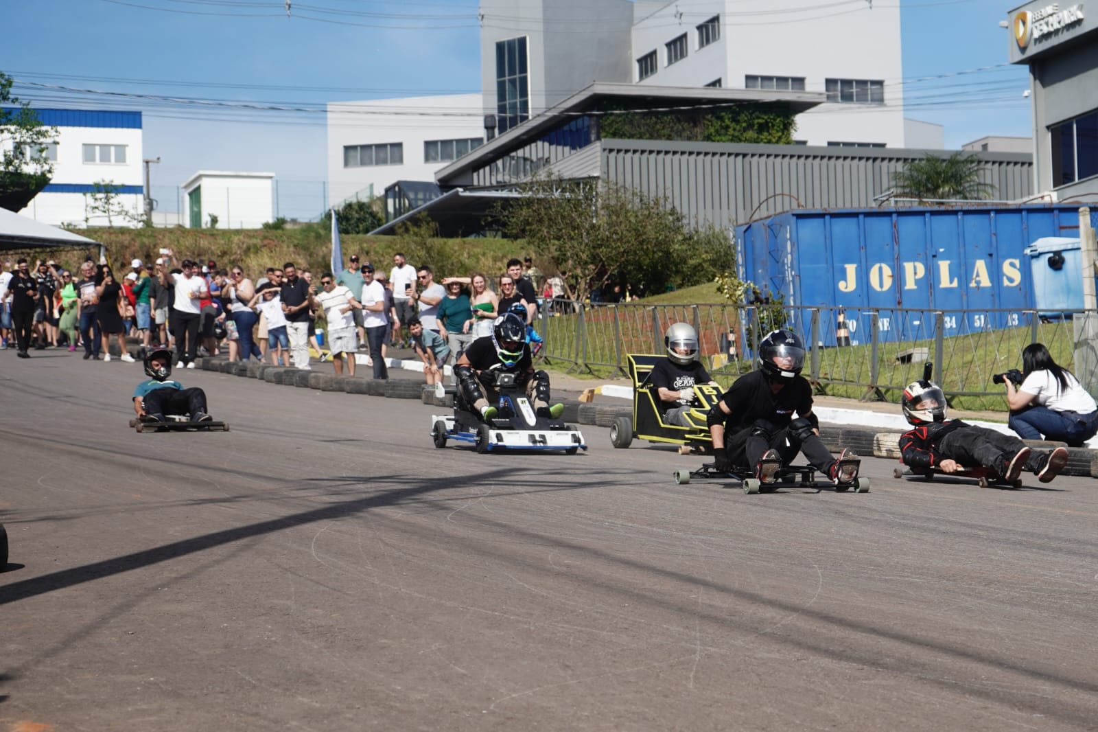O último domingo foi de nostalgia, emoção e muita adrenalina na Alameda da Inovação, junto ao Feevale TechPark, com mais uma edição do Encontro de Carrinhos de Lomba de Campo Bom. Cerca de 100 carrinhos desceram a lomba, ao longo do dia e mais de 70 pessoas participaram da competição. Das 9h da manhã, até às 18h, a estimativa dos organizadores é de que mais de mil pessoas prestigiaram o evento.