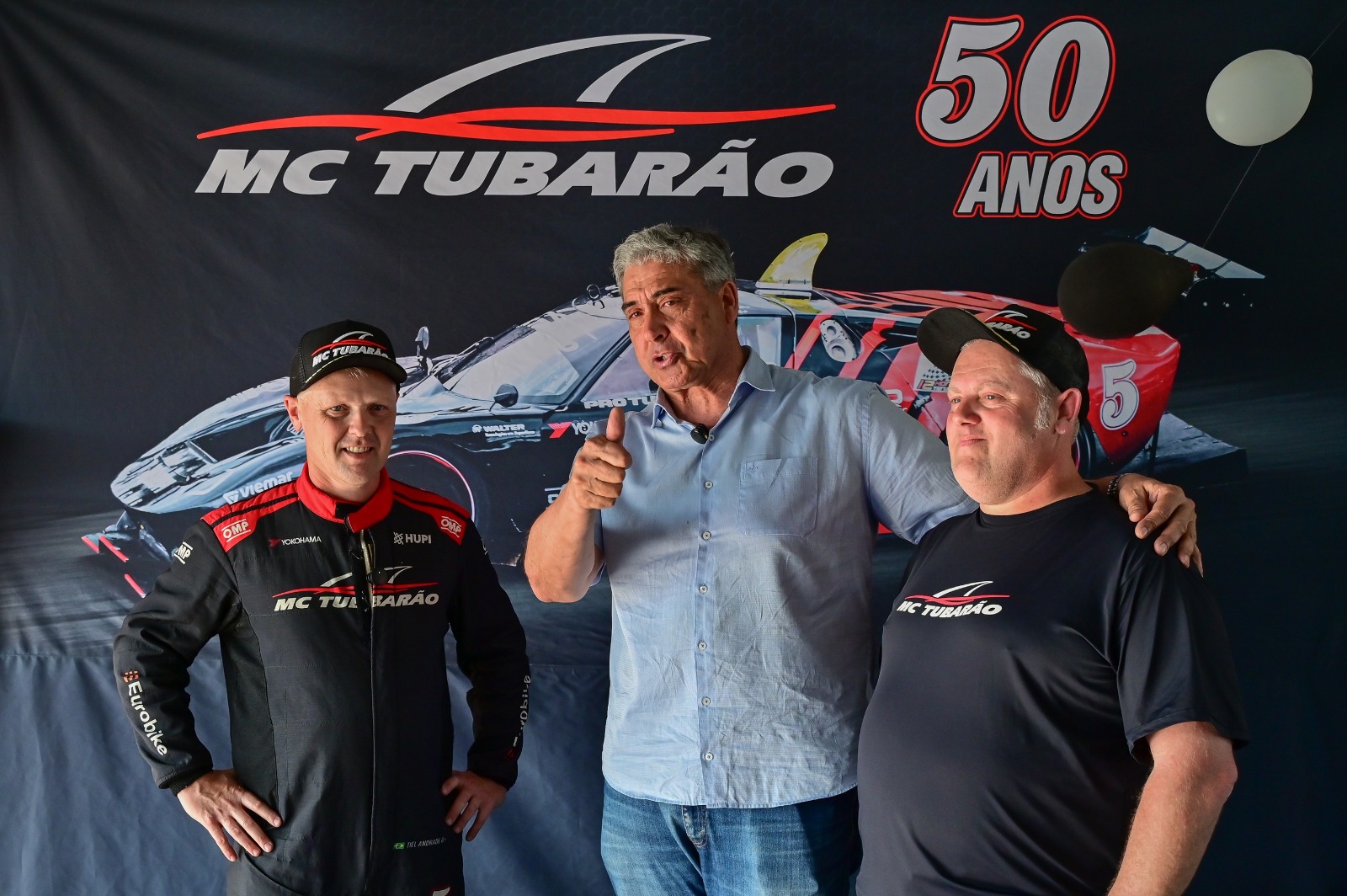 A MC Tubarão comemorou seus 50 anos de história com um grande evento na tarde e noite desta quinta-feira, no Autódromo Internacional do Velopark, em Nova Santa Rita. O encontro reuniu mais de 100 pessoas, entre familiares, amigos, pilotos atuais e ex-pilotos da equipe, lendas do automobilismo gaúcho, autoridades e representantes da imprensa. A celebração marcou oficialmente as atividades alusivas ao meio século de trajetória da equipe fundada em 1975 por Carlinhos de Andrade, em Campo Bom.