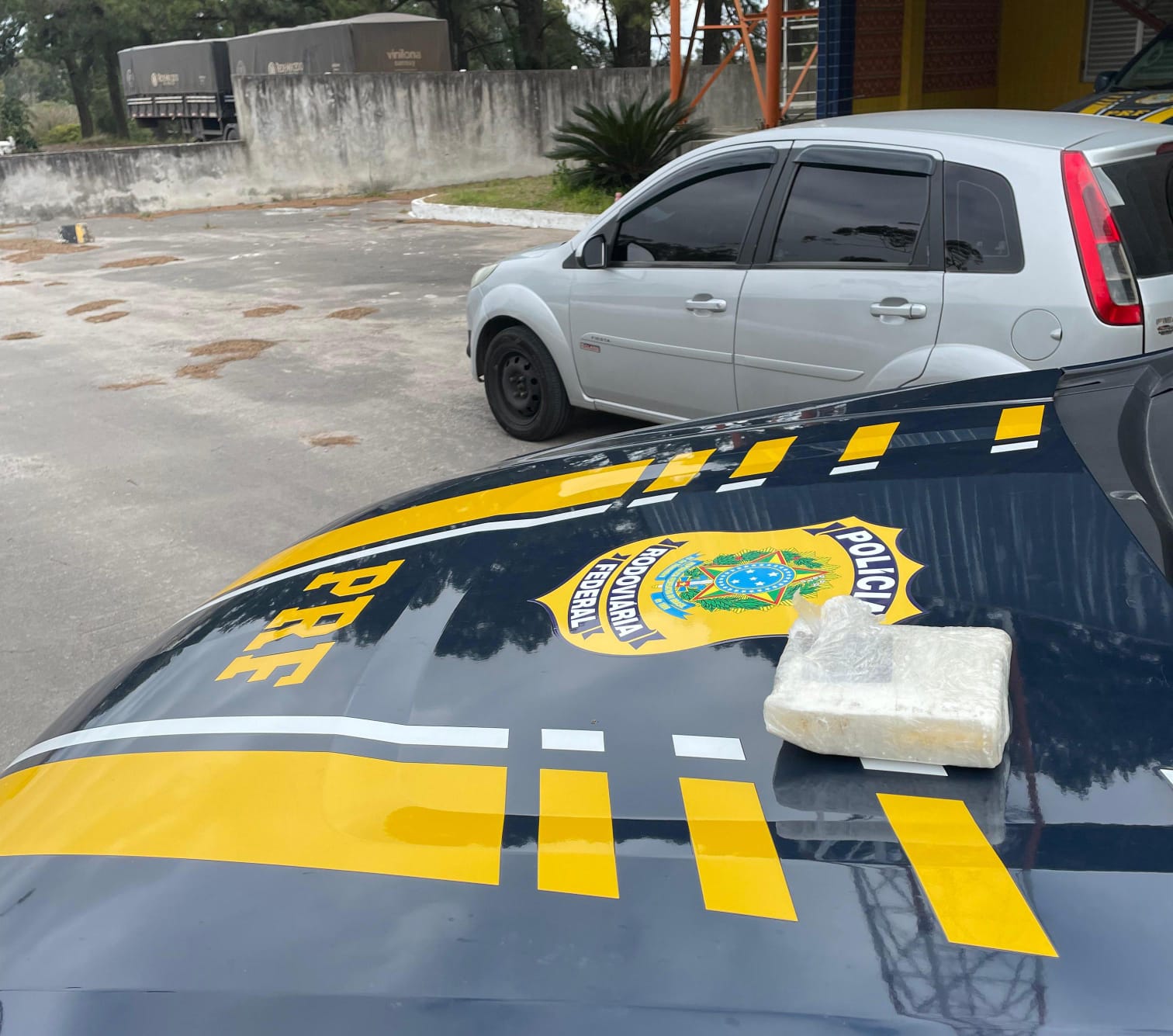Enquanto os policiais realizavam revista no automóvel, a motorista, nervosa, pediu para ir ao banheiro, o qual foi vistoriado antes e depois do uso. Tão logo ela saiu do local, um tijolo de cocaína foi encontrado no lixo.