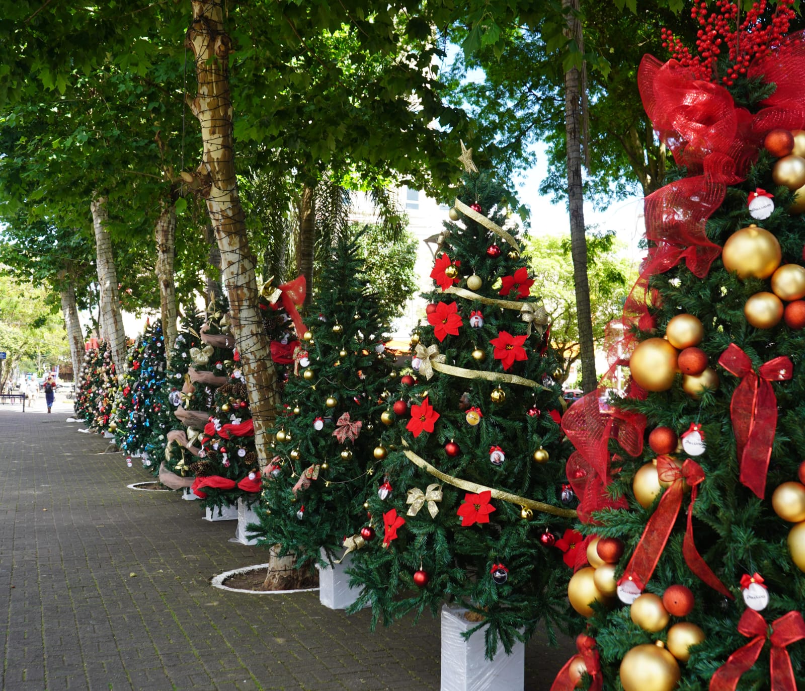 Parceria entre Prefeitura, Eintracht e CDL Jovem transforma Praça João Blos com árvores de Natal decoradas por comerciantes